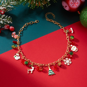 欧美热卖圣诞节派对项链圣诞老人雪人麋鹿彩色铃铛项链圣诞节礼物