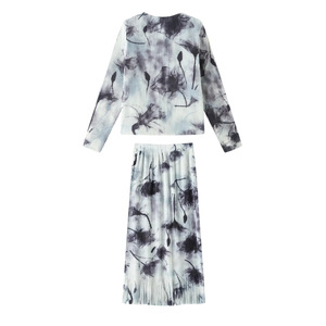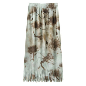 水墨画套装秋季长袖开衫外套时尚宽松典雅气质流苏半裙两件套新款