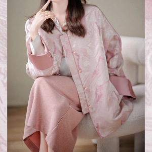大喜|桃花坞国风外套|浪漫提花人丝圆领亲肤简约秋季上衣2025秋季