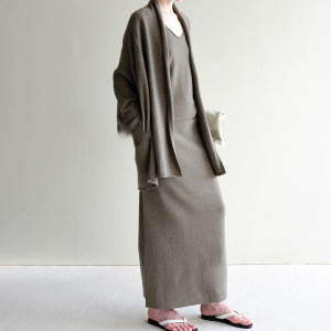 Moga静奢风 纯慵懒卷边纸片人针织开衫吊带半裙女春秋气质简约时