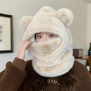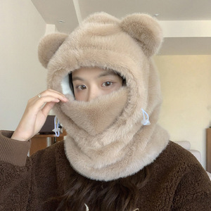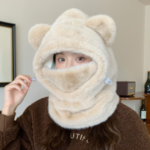 冬天保暖神器可爱甜美小熊帽子女款口罩围巾一体帽护耳保暖雷锋帽