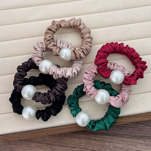 复古法式珍珠小肠发圈百搭气质扎头绳丸子头高弹力皮筋女马尾发绳