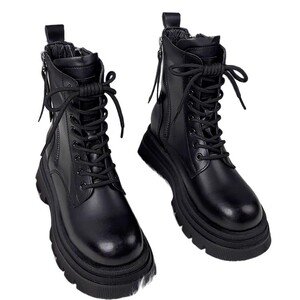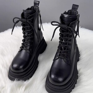 牛皮版~厚底马丁靴女2025春秋季英伦风网红爆款靴子小个子单靴