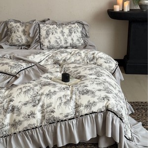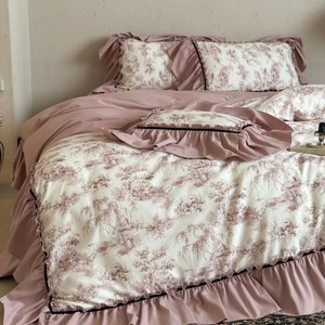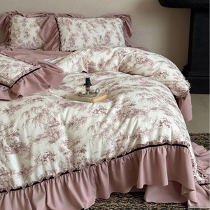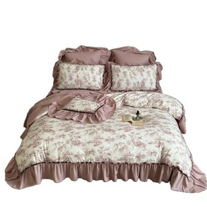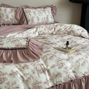 法式田园风磨毛四件套全棉公主风复古花边长绒棉被套床单床上用品