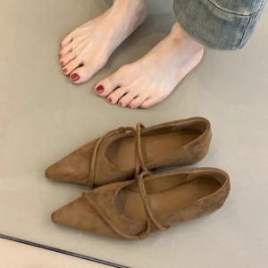 羊皮版~复古一字带内增高芭蕾舞单鞋浅口气质法式尖头玛丽珍女鞋