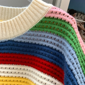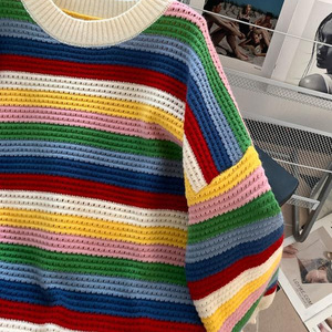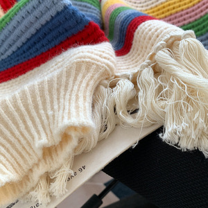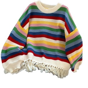 彩虹条纹彩色流苏超好看毛衣外穿女士2025秋冬宽松慵懒风针织上衣