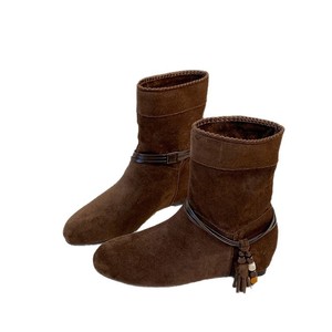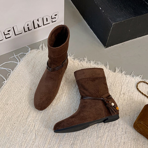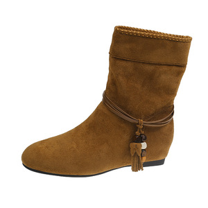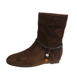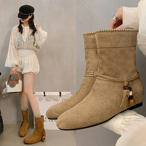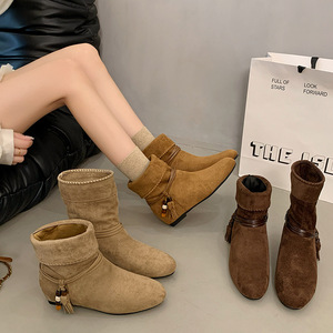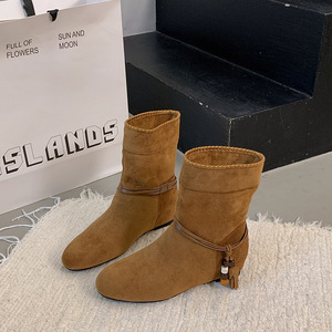 巨好看的流苏内增高小短靴女2025秋冬新款绒面平底内增高瘦瘦靴子