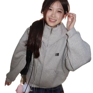 美式重磅解构连帽高街外套女秋冬潮流穿搭设计感拼接帽衫拉链卫衣