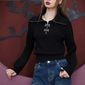 小狗拉链圆领毛衣外套女秋冬2025新款慵懒风软糯短款时尚针织开衫
