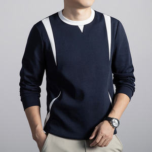 跨境男装男士卫衣亚马逊新款拼色套头针织衫独立站外贸V领上衣潮