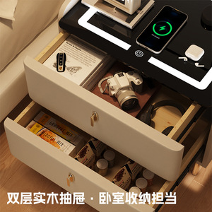 新款智能指纹床头柜家用轻奢现代简约卧室小型床边收纳储物柜子