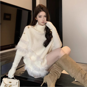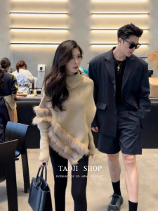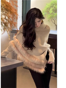 法式不规则披肩斗篷毛毛针织毛衣女秋冬千金感宽松气质设计感上衣