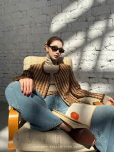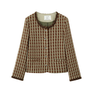 鹭青一【琥珀光9.08 20:00新品】复古千鸟格法式休闲小香短外套女