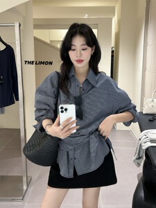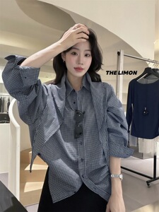 【高品质订货】氛围感洋气格纹衬衫(配披肩)(可做披肩或系腰上)