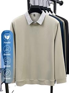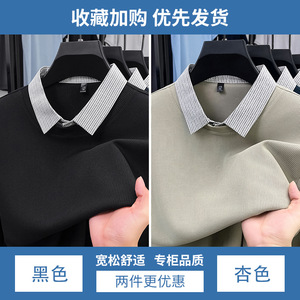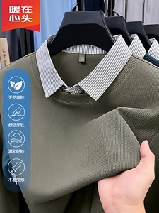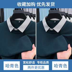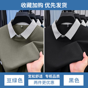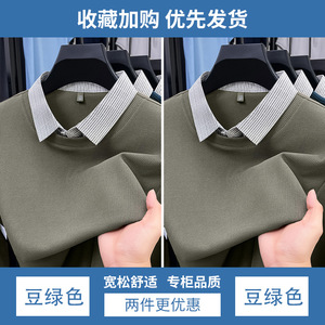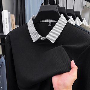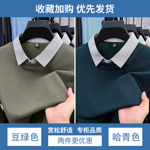 2025新款春秋季男士假两件纯色针织衫商务休闲衬衫领长袖卫衣T恤
