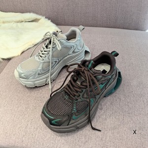 欧洲站XJ女鞋25秋冬时尚撞色软胎牛皮拼布圆头系带休闲老爹慢跑鞋