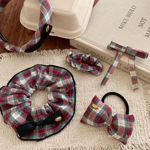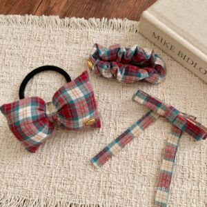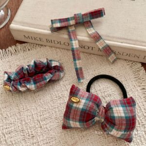 美式复古学院风红绿格子发夹大肠发圈抓夹新款少女格纹发饰高颜值