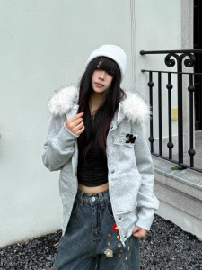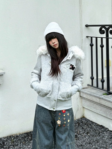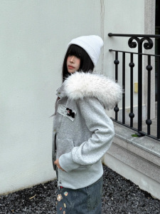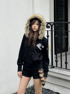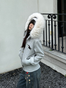 美式可拆卸大毛领连帽卫衣外套女小众设计感修身显瘦开衫夹克上衣