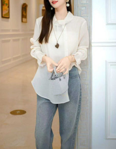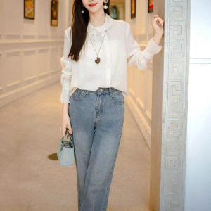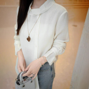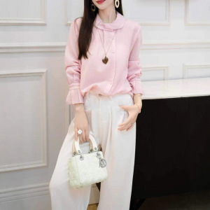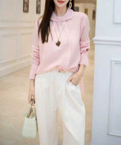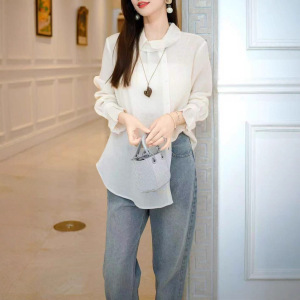 南油代发篙奢法式羊毛花苞领对丝上衣2025新款优雅气质衬衫长袖女