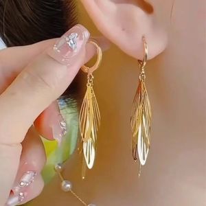 新款爆款金色翅膀流苏耳环女轻奢高级感时尚气质耳扣长款耳坠耳饰