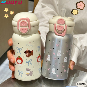 新款可爱高颜值保温杯女生学生上学吸管水杯小众便携儿童双饮杯子