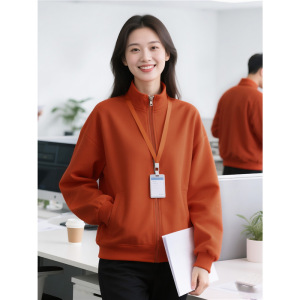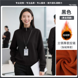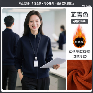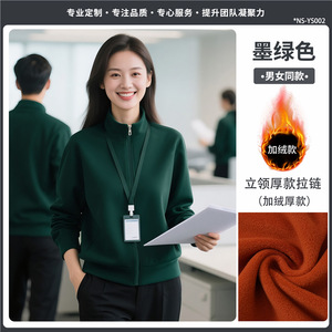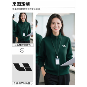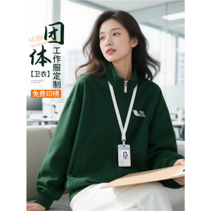 立领卫衣定制工作服印logo秋冬季长袖高端墨绿色4S店加绒工装外套