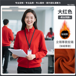 【高端纯色立领厚款450g--加绒款】大红色