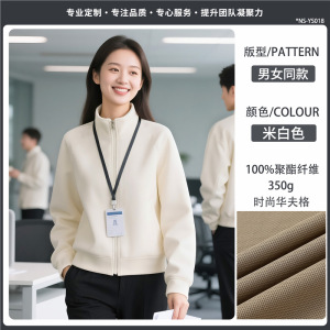 【时尚华夫格纯色立领350g--常规款】米白色
