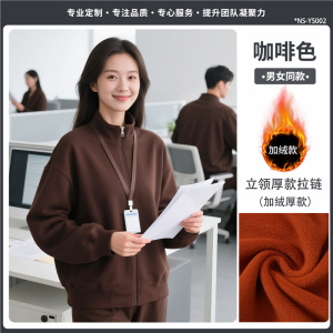 【高端纯色立领厚款450g--加绒款】咖啡色