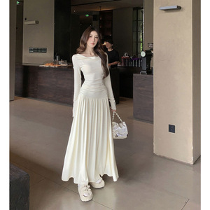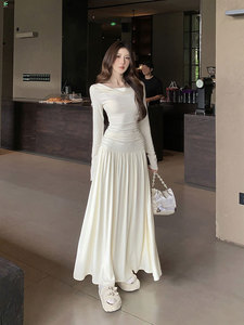 纯欲辣妹收腰修身显瘦长袖针织连衣裙女秋季法式气质内搭打底长裙