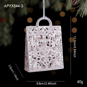 新款塑料粘粉挂件粉色闪粉铃铛雪花圣诞树挂饰装饰轻奢吊饰现货