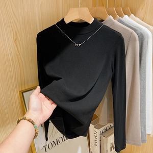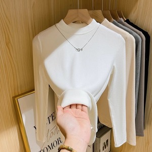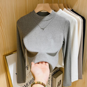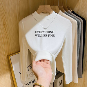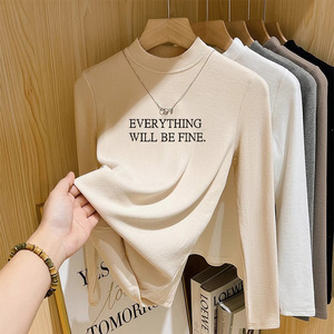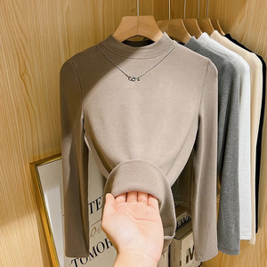 杏色美拉德穿搭打底衫女2025秋新款9585小立领德绒上衣长袖t恤