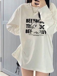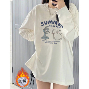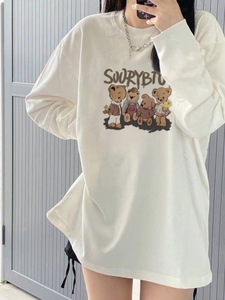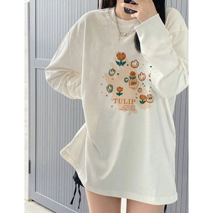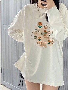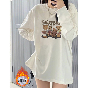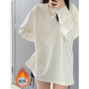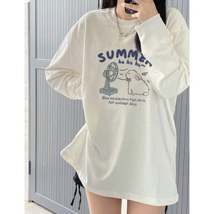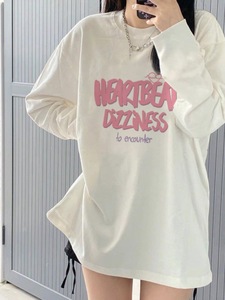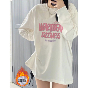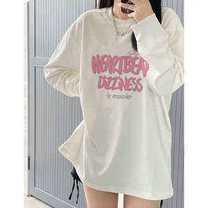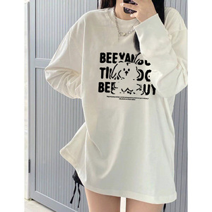 美式复古长袖T恤女生2025早秋新款宽松显瘦打底衫白色上衣服