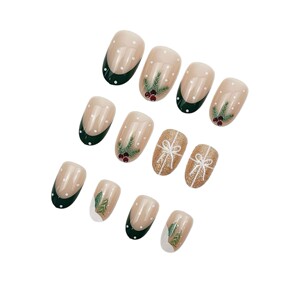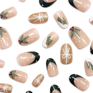 圣诞节穿戴甲甲片绿色法式金粉波点可拆卸假指甲跨境24片美甲贴片