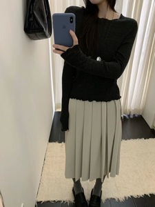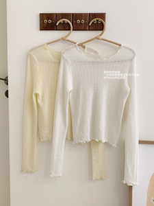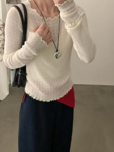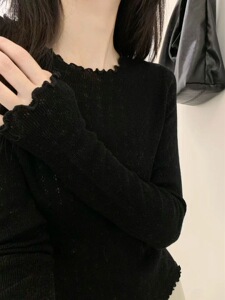 陆续2025秋冬新款韩国东大门木耳边镂空打底衫甜美软糯纯色针织衫