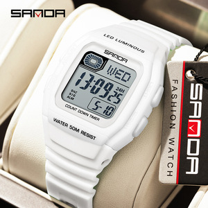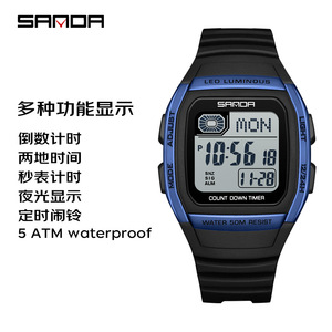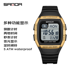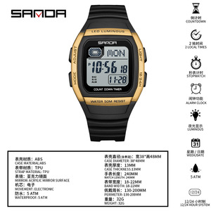 SANDA运动电子表外贸方形多功能倒计时腕表男女款夜光休闲电子表