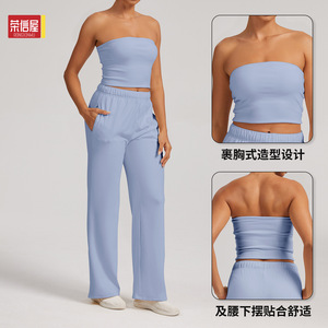 跨境欧美德绒瑜伽背心裸感保暖透气抹胸户外紧身运动跑步健身背心