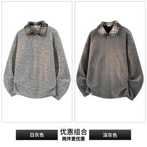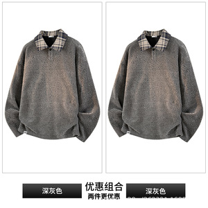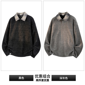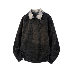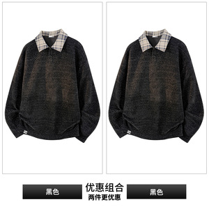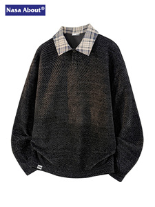 NASA老钱风潮流POLO衫黑色卫衣男士秋季新款宽松休闲针织衫上衣服