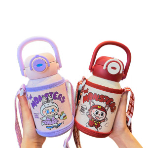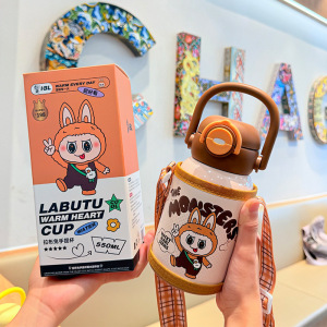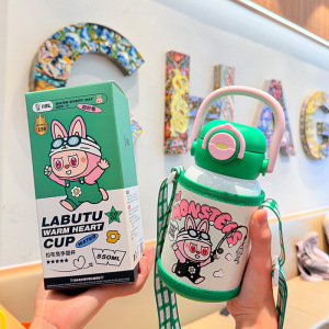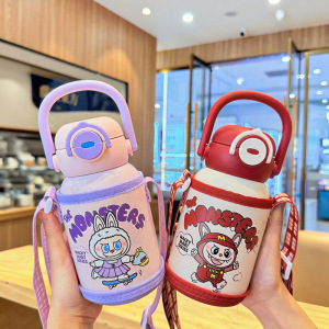新款卡通拉布兔儿童保温杯高颜值316不锈钢吸管杯便携式上学水杯