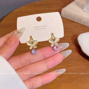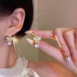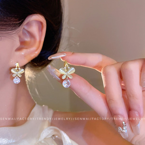 韩系气质猫眼石花朵耳扣女轻奢小众设计高级感耳环百搭精致耳饰品