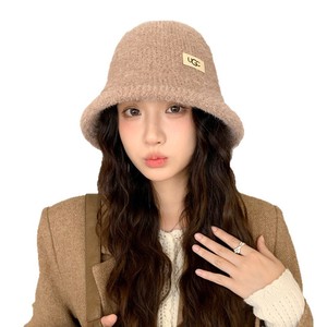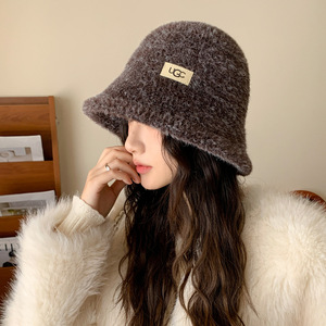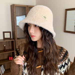 秋冬季帽子女仿水貂绒字母渔夫帽日系毛绒保暖帽加厚百搭时尚盆帽