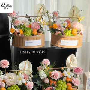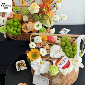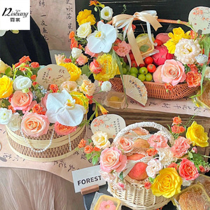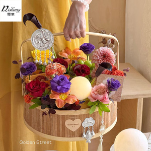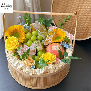 中秋节单层竹编花篮鲜花水果月饼手提篮花艺插花篮手工编织礼品篮