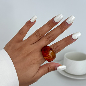 欧美跨境ins风冰透晕染不掉色树脂戒指 简约几何光面宽指环Rings