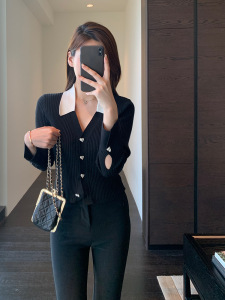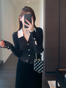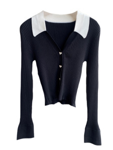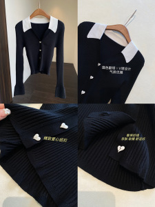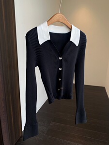 别致时髦 撞色polo领羊毛混纺针织衫显瘦毛衣女秋冬新款