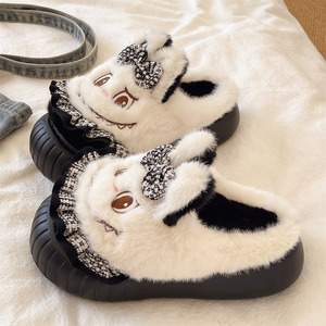 毛毛拖鞋女冬季居家室内毛绒保暖防滑厚底可爱搞怪兔子棉拖鞋外穿