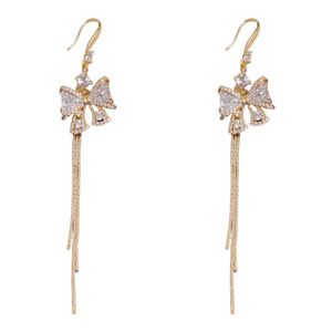 锆石蝴蝶结长款流苏耳坠(加厚真金电镀)