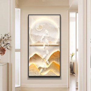 高级感新中式装饰画玄关走廊金属竖版挂画客厅沙发背景墙艺术壁画