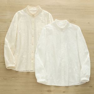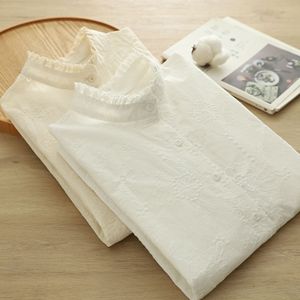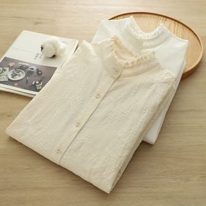 日系森女木耳边立领重工刺绣长袖衬衫 女秋装新款显瘦上衣批发