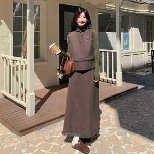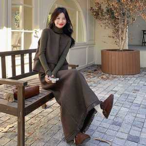 秋季流行风格两件套连衣裙女2025新款高级感显瘦法式马甲套装裙子