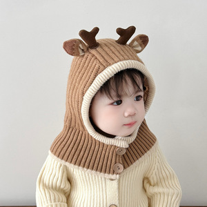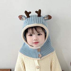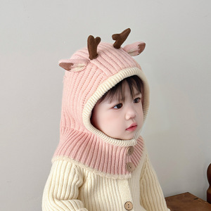儿童帽子冬天护耳可爱男女童毛线帽围巾秋冬季宝宝围脖一体帽保暖